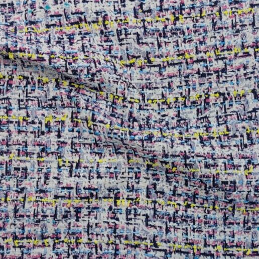 The new jacquard collection of DUTEL for the Spring/Summer 2025 season has been built around four main themes: Persane – a sober and refined theme inspired by Orientalist influences; Pop Corn, a regressive and slightly offbeat spirit with vibrant colours inspired by Pop culture; Wibes – an ethnic and festive theme; and Brut – a sportswear theme in natural tones.