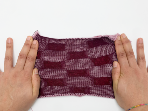 Die Herkunft des Materials ist bewusst zweitrangig gegenüber der Struktur. KnitForm+ wird nicht als Faserinnovation präsentiert, sondern als ein System, mit dem das Verhalten von Strickwaren auf verschiedenen Materialbasen bearbeitet werden kann. Was zählt, ist, wie das Textil reagiert: wie es das Volumen reguliert, den Druck verteilt und von flachen zu dreidimensionalen Zuständen übergeht. Die Transparenz des Prozesses ist in der Methodik selbst verankert. Jede Form entsteht durch iterative Probenahme, strukturelle Tests und maschinelle Experimente und nicht durch dekorative Veredelung.