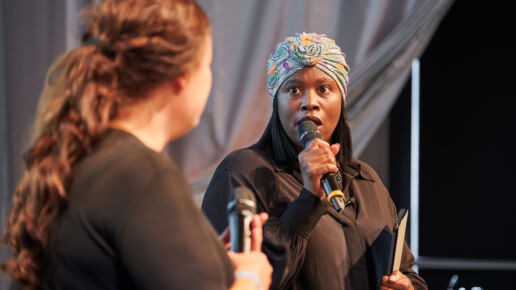 Ein Team aus jungen Modedesigner:innen hat in den letzten Wochen ein tolles Upcycling-Projekt realisiert: aus vormaligen Messematerialien wie Fahnen, verschiedenen Messebannern und Teppich left overs der MFS haben sie einzigartige Taschen genäht.